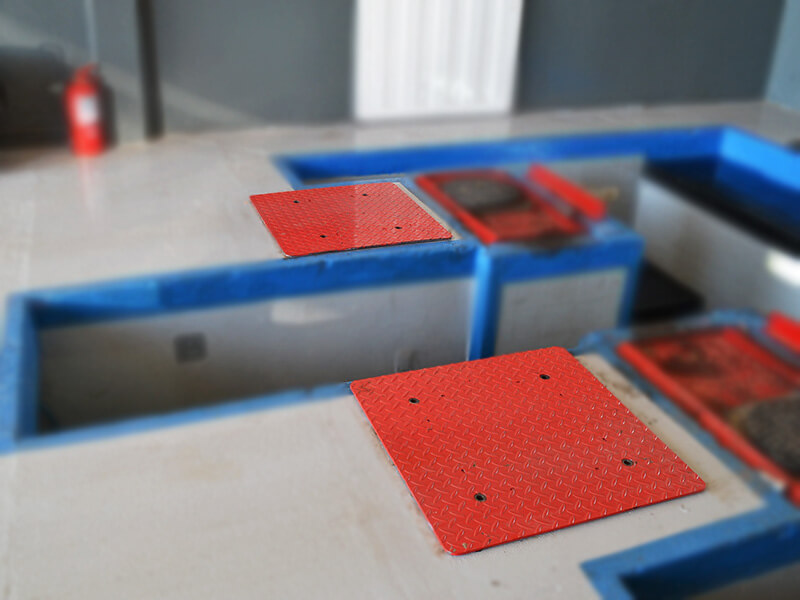 Esta comprobación se lleva a cabo gracias a las dos placas de comprobación ubicadas en el suelo a un mismo nivel. Dichas placas son guiadas en sus movimientos de avance-retroceso, izquierda-derecha y sus respectivas transversales, mediante cómodos controles montados en una práctica lámpara de mano.