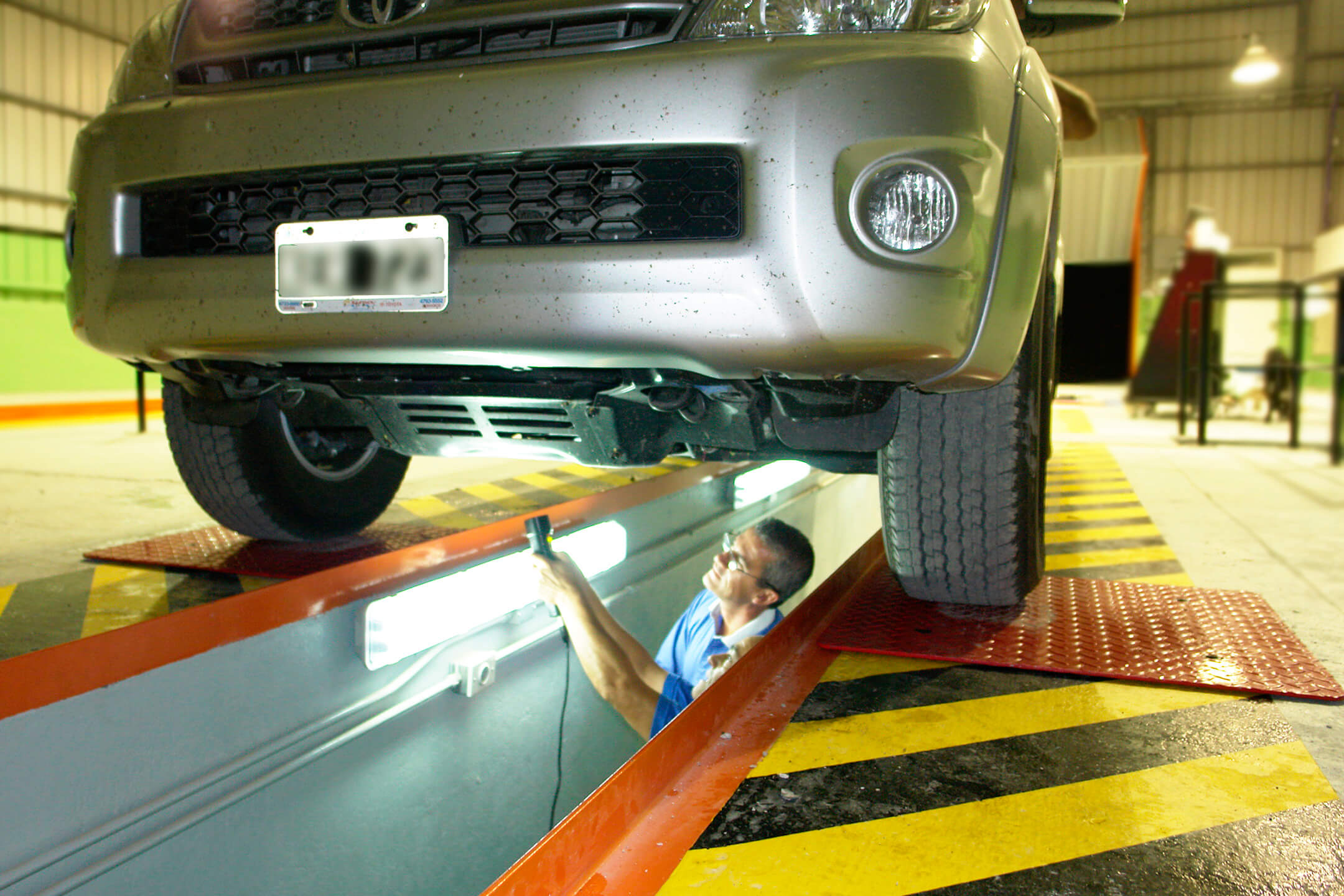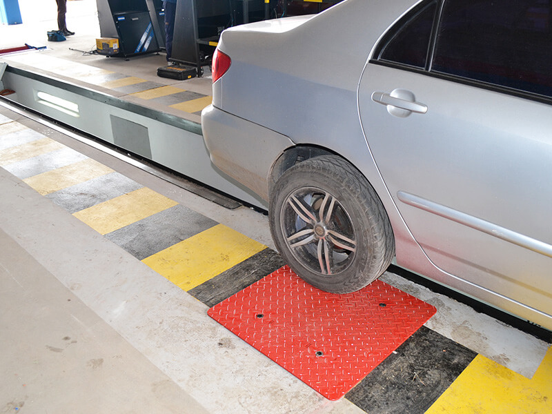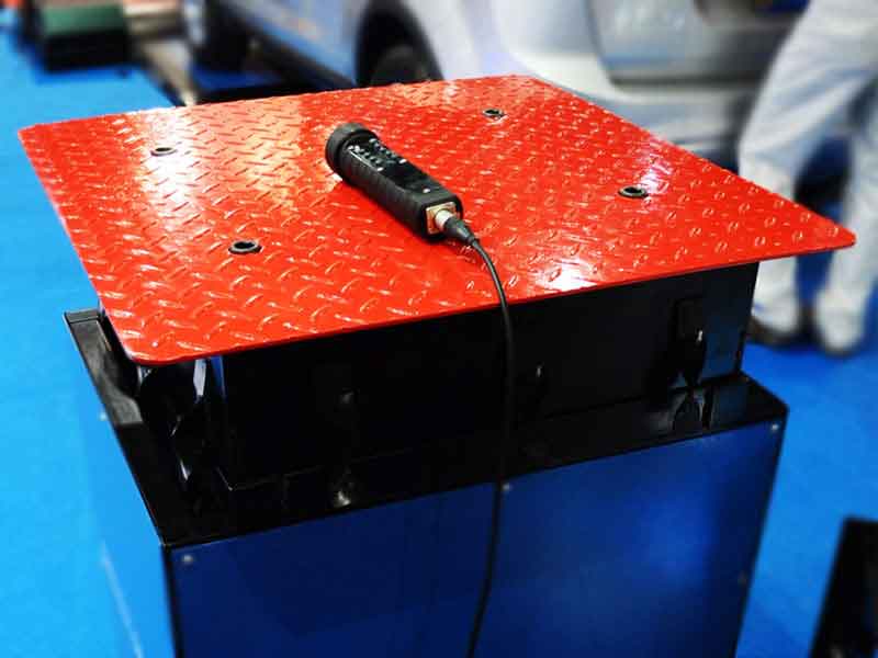Esta comprobación se lleva a cabo gracias a las dos placas de comprobación ubicadas en el suelo a un mismo nivel. Dichas placas son guiadas en sus movimientos de avance-retroceso, izquierda-derecha y sus respectivas transversales, mediante cómodos controles montados en una práctica lámpara de mano.
